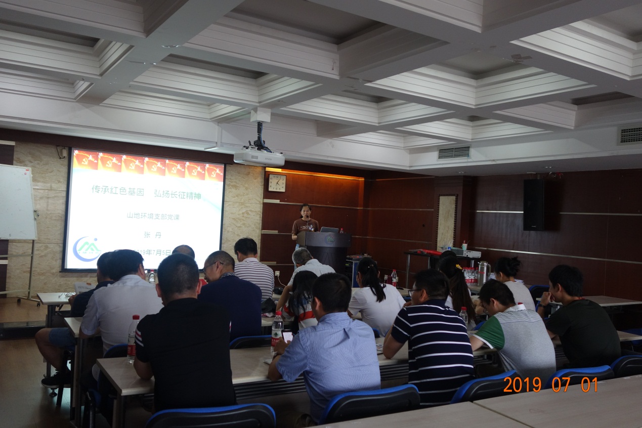 首先, 支部宣传委员刘琛带领全体党员回顾了党的光辉历程,支部书记张丹以“传承红色基因 弘扬长征精神”为题讲了党课并带领大家重温入党誓词,对全体党员进行了一场现实与理论相结合的党性教育。