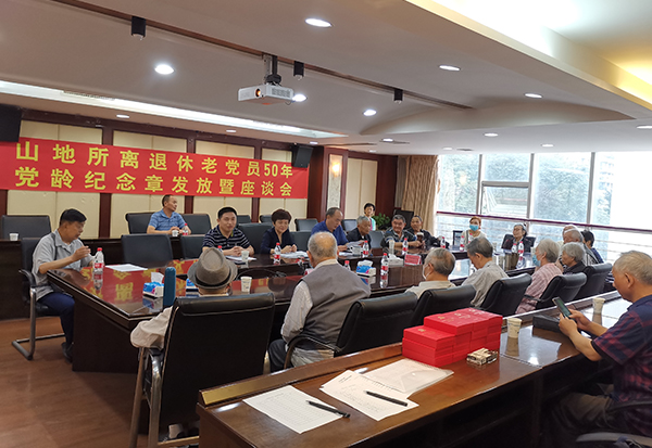 6月17日,成都山地所召开了“光荣在党50年”纪念章颁发暨离退休党员代表党史学习座谈会。所长文安邦、党委书记兼副所长罗晓梅、党委副书记兼纪委书记谭多财及16位50年党龄的离退休老党员代表参加了座谈。会议由罗晓梅主持。