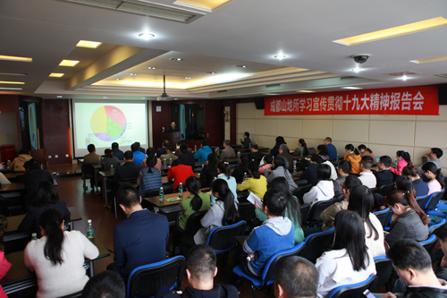 所长文安邦分享了学习十九大报告的体会,认为十九大报告展现了新时代的使命、征程、纲领,具有全球视野、中国特色、政治宣言、行动纲领总体特点。他在讲话中指出,今后很长一段时间,山地所都要自觉把认真学习贯彻十九大精神作为一项重要的政治任务,一要深刻认识十九大召开的历史意义和现实意义;二要深刻领会十九大报告的精神实质和核心要义;三要将十九大精神学习成果体现在特色所建设和防灾减灾创新研究院筹建中,重点将十九大报告对“生态文明”、“安居”等方面的要求在山地所下一步学习和行动中去研究落实,并为国家乡村振兴战略作出贡献。