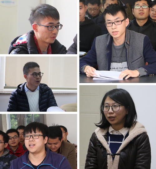 在交流环节,同学纷纷发言,分享学习十九大精神的体会与感想。光电所魏文举同学表示,在十九大学习中,感触最深的就是,青年人受到了极大的关注,习总书记在报告中,表达了对青年一代的关心与希冀,作为一名党龄五年的青年党员,见证了党的十八大到十九大,在全面建设社会主义现代化国家新征程路上,作为一名参与者,深感责任重大。化学所肖熙同学表示,决胜全面建成小康社会,体现了国家的信心与决心,令自己倍受鼓舞。生物所宋梦洹同学表示,作为一个生物工作者,深知生态文明建设的重要性,党的十九大提出,人与自然是生命的共同体,绿树青山就是金山银山,国家重视绿色发展,也让大家看到了希望,因为对环境的保护,是可持续发展的根本。山地所胡洪森则表示,国家对一些有争议事件的有力发声,对维护祖国统一的决心,感受到祖国的强大。山地所李彦稷分享了在马尔康地质考察期间,与藏族同胞的交谈中,深切感受到偏远山区人民对国家关怀的感激之情。