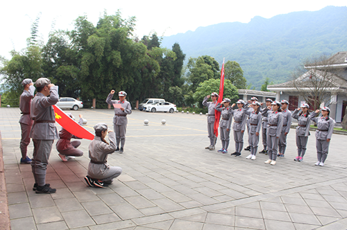 在纪念馆前,党员们换上红军装,排着整齐的队列,举起右手,对着鲜艳的党旗,重温入党誓词、向党旗庄严宣誓,向为国捐躯的革命先烈敬献了花篮。随后参观了陈列大厅、红军碑亭以及石塔寺区苏维埃政府旧址,通过观历史照片、长征文物和红军石刻标语,听红军在邛崃讲座以及走长征路的亲身体验,直观生动地感受到了红军长征期间邛崃地下党、抗捐军、红四方面军以及川康边人民游击队的英勇事迹和前赴后继的革命精神。