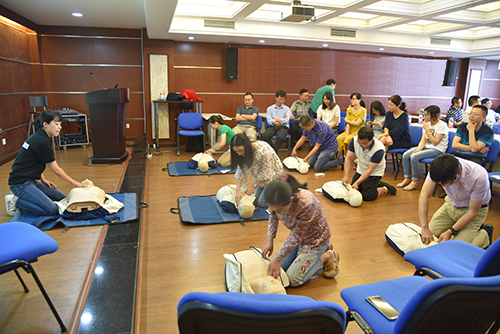 鉴于山地所职工及研究生主要以野外工作为主,常常出入偏远及高海拔地区进行科考,偶尔遇到不可控因素会对职工的安全及健康构成威胁,因此支部邀请了国际应急医疗队队员、四川大学华西医院急诊科灾害学组成员张建娜女士和袁震飞先生开展了野外紧急医疗救援的培训,主要包括了心肺复苏技术、止血包扎及野外常见外伤的应急处理等内容,使得职工可以学习和掌握一定的紧急医疗救援知识与技能来保障自身安全。大家听完专家讲授要点后还进行了实际操作演练,提升了紧急处理技能。