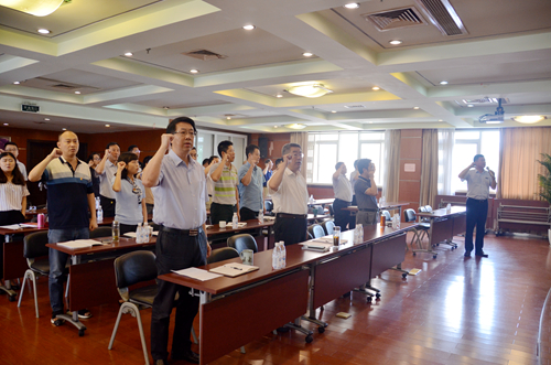 会前,全体党员通过在党旗前重温入党誓词,以当初入党时的真诚和激情进一步坚定理想信念。