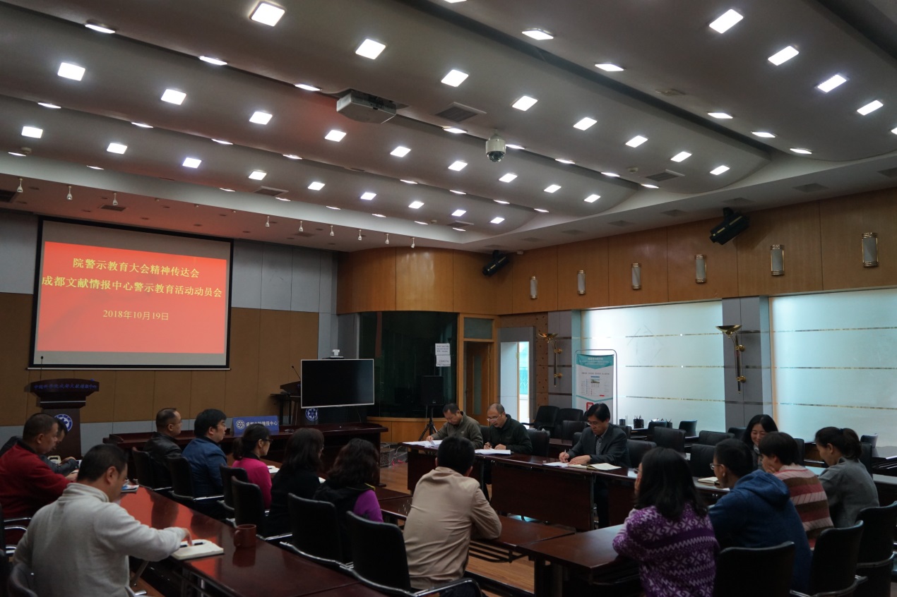 10月19日上午,成都文献情报中心召开全院警示教育大会精神传达会暨中心警示教育活动动员会。中心主任张志强,党委书记邓勇,纪委书记房俊民,中层领导干部,党支部书记参加会议,会议由邓勇主持。