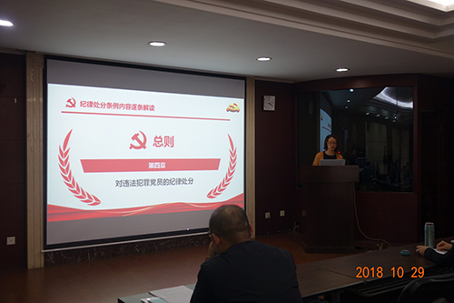 10月29日, 山地所环境支部开展了一次以警示教育为主题的组织生活会,并学习了中央财经委员会第三次会议精神和《中国共产党纪律处分条例》。本次会议由支部副书记严冬春主持,党办副主任王萌受邀主持了警示教育的学习。