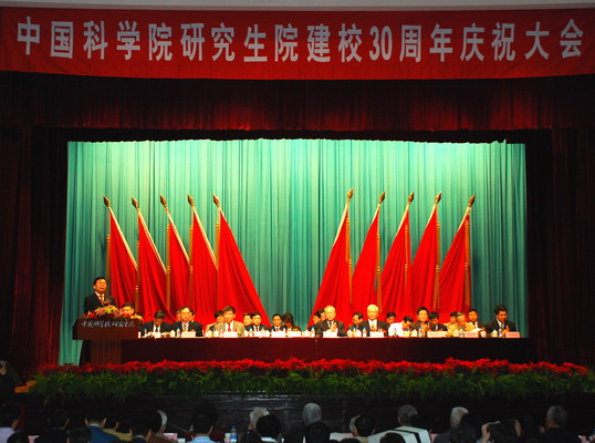 会议由中国科学院研究生院党委书记兼副院长邓勇主持。多位国家领导人、知名科学家、老领导及国际友人发来题词贺信。李岚清、路甬祥、陈至立、郑必坚、成思危、周光召、王大珩、杨振宁、李政道等题词祝贺中科院 研究生院建院30周年。