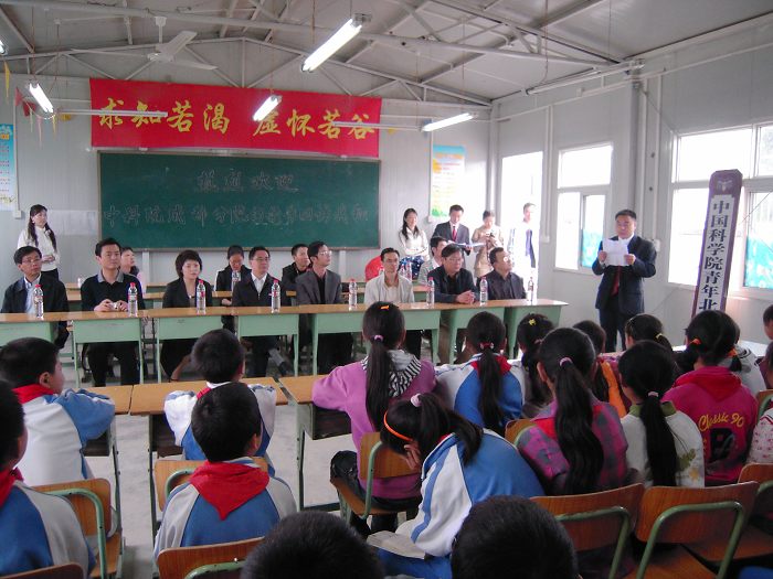 2004年8月,由中国科学院青联发起,全院青联委员和职工积极参与捐建,常务副院长白春礼亲自题写校碑的“中国科学院青年北川希望小学”正式揭牌,自此,中国科学院成都分院就一直关注着希望小学的发展和成长。