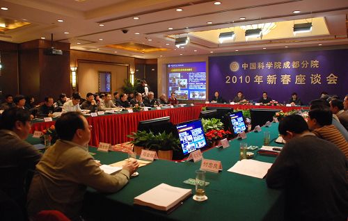 2月8日,成都分院召开2010年新春座谈会暨迎春团拜会。成都分院领导,成都地区各单位领导,中国科学院院士张景中、赵尔宓,中国工程院院士姜文汉、林祥棣,成都生物所原所长、地奥集团总裁李伯刚等出席会议。会议由成都分院院长彭宇行主持。
