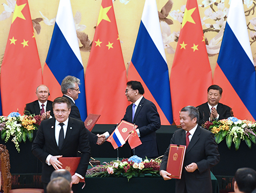 6月8日下午,在国家主席习近平和俄罗斯总统普京的共同见证下,中国科学院院长白春礼和俄罗斯科学院院长谢尔盖耶夫·亚历山大·米哈伊洛维奇在北京人民大会堂签署《中国科学院与俄罗斯科学院科技合作协议》。