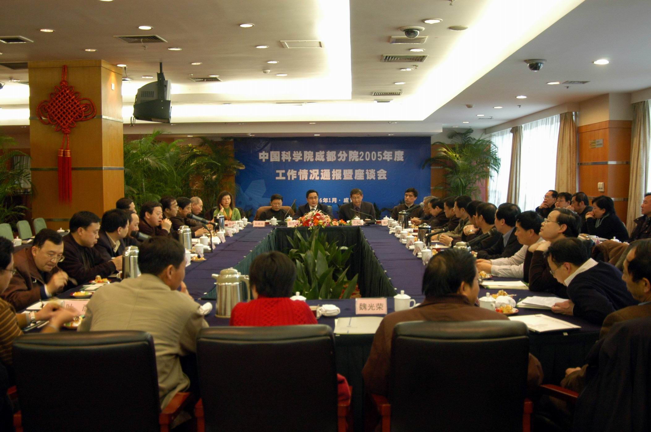 彭宇行在回顾2005年工作时说:2005年,成都分院按照中国科学院新时期办院方针和院党组提出的“创新跨越,持续发展”的新的科技发展观要求,切实履行院赋予分院的各项职能,紧紧围绕提升分院系统整体创新能力和促进地方经济社会发展这两个目标,坚持本届班子提出的“整合院属成都各单位力量,发挥成都分院整体综合优势,为中国科学院知识创新工程和地方经济社会发展作出新贡献”的发展思路,真抓实干,开拓创新,在推动分院系统党员先进性教育活动,党建、领导班子和人才队伍建设,院地合作及促进成果产业化,创新文化建设,园区管理,教育基地建设等方面取得了新的进展,为成都地区院属单位的改革、创新和持续发展提供了有力支撑。 2006年正如路甬祥院长指出的:“是不平凡的一年,是国家实施‘十一•五’经济社会发展规划和中长期科技发展规划的开局之年,也是中科院中长期发展规划实施的开局之年,是中科院创新工程三期工作的启动年,国家和中科院都进入了新的发展阶段”。在新的机遇和挑战面前,作为中科院党组派出机构的成都分院,要进一步认清形势和责任,加强战略思维、研究和规划,凝练和明确工作目标。继续加强领导班子建设和党建工作;进一步整合资源,做好服务地方经济发展的院地合作工作,尤其是与大企业的合作;完善人才队伍建设体系,加强人才培养,尤其是青年人才的培养工作;完善为研究所和科研人员服务的工作体系,加强科研基地的管理。