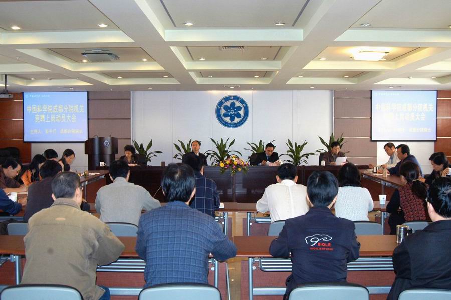 成都分院副院长袁家虎首先宣读了分院和分院党组对有关人员的任命决定;院长助理葛丽佳宣读了《成都分院机关职能部门上岗实施办法》;成都分院党组书记彭玉水在动员报告中,就此次竞聘上岗的原则、范围、组织、聘用程序和竞聘条件等情况进行了说明,对评委和职工提出了希望和要求,并强调要严格招聘纪律。