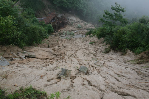 6月10日,湖南临湘市詹桥镇暴发山洪泥石流。面对严重灾情,成都山地所紧急部署,派出山洪泥石流专家奔赴灾区开展调查。6月13日陈宁生研究员率四人团队急赴灾区,对詹桥镇贺畈乡观山村山洪泥石流开展了应急考察,研究了其发育与成灾特征和致灾机理,为救灾工作提供了科学依据。