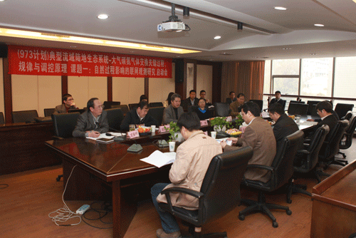 会上,郑循华研究员介绍了973项目“典型流域陆地生态系统—大气碳氮气体交换关键过程、规律与调控机理”的基本情况。