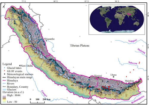 冰湖溃决灾害是一种高山区严重的自然灾害,其爆发突然、破坏力大、影响范围广。喜马拉雅山脉是全球冰湖溃决灾害最严重的地区之一,历史上溃决事件多发。全球变暖背景下,该地区冰川消融,冰湖快速扩张,冰湖溃决灾害风险持续增加,引起了地方政府和学者们的广泛关注。目前,对整个喜马拉雅地区冰湖最新分布和近年变化的认识有限,制约了当地的防灾减灾工作。