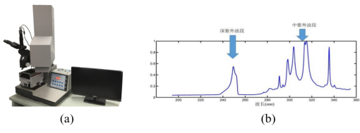 (a)设备外观图 (b)设备输出光谱实测曲线