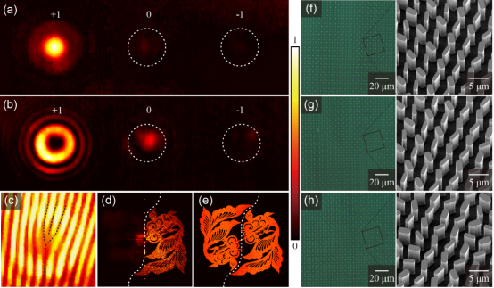 大多数生物必需的营养素,例如氨基酸和葡萄糖等, 其分子结构具有固有的手性特征。通过结构的手性光学响应,可检测这些分子的浓度。然而, 传统的手性检测技术需要复杂的光学系统,其体积庞大,很难实现微型化和集成化,同时也大幅度降低了效率和成像质量。光电所研究团队在国际上首次提出了一种基于非对称光子自旋轨道相互作用的新型全介质超表面,其制造工艺简单、手性响应强,且能够通过入射方向控制透过的圆偏振光的旋向并同时实现波前调控。这些特性可大大减小应用于手性成像、手性光谱学、光通信等领域的光学系统的体积、重量、成本和能量损失。例如,在手性成像系统中,提出的单层超表面即可实现手性探测,而传统方法需要数片线偏振片、玻片、透镜才能同时实现圆偏振滤波和成像。