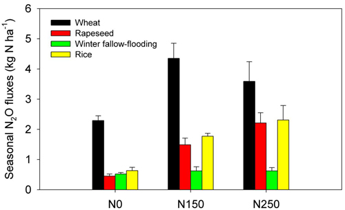 西南主要农田生态系统N2O排放通量及其对施氮量的响应格局