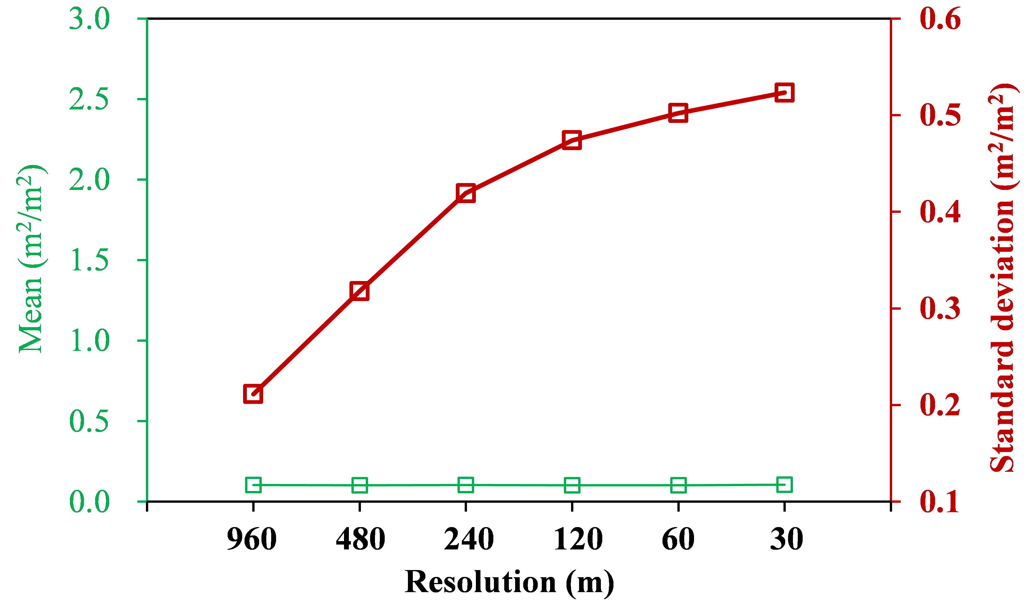 融合多源多尺度遥感数据,借助集合多尺度滤波算法,兼顾不同分辨率遥感影像间的信息传递过程,构建了复杂山地多尺度LAI遥感反演模型,生成了960 m、480 m、240 m、120 m、60 m和30 m尺度LAI数据集。研究发现,随着空间分辨率的增加,山地LAI空间纹理信息和变化过程逐渐丰富,且地形对LAI遥感反演的影响愈加显著;消除地形对遥感信号的辐射畸变能够显著改善不同坡度条件LAI反演精度,极大提升了多尺度LAI估算结果的空间一致性及表达能力。