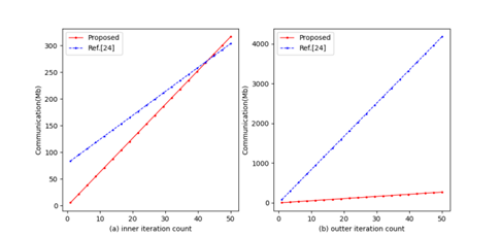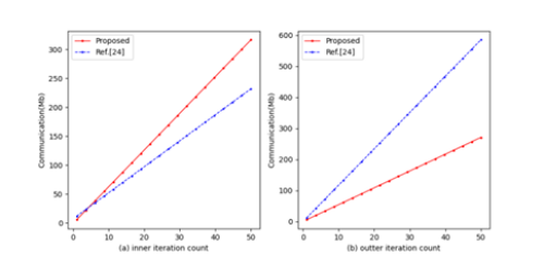 图3 通信量对比(特征维数=90,不同迭代次数)