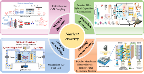 基于上述技术,团队集成开发双极膜电渗析-中空纤维膜耦合系统,实现了尿液中氮、磷、钾回收率分别达89%、96%、95%,并将其转化为液态肥料和工业酸碱化学品。中试规模经济预测显示,该系统净收益可达$19.90/m3尿液,为尿液全资源回收与零排放提供了经济可行的技术路径。