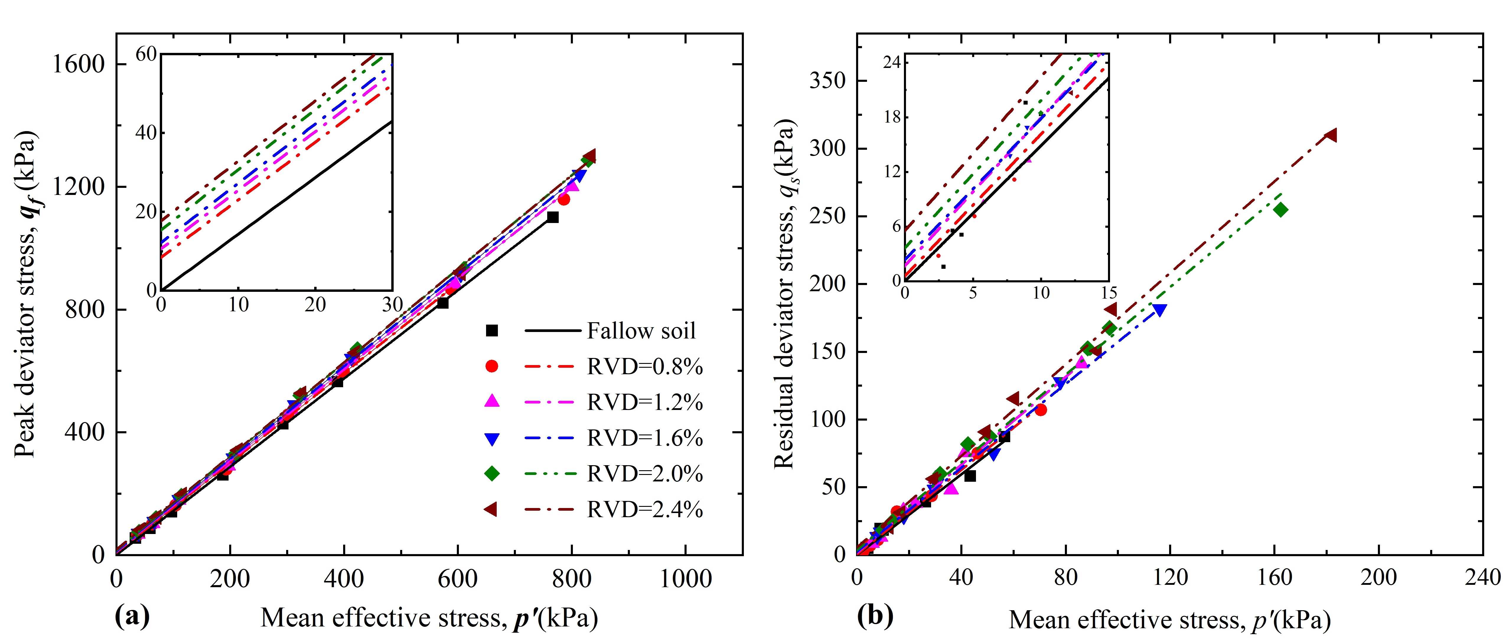 针对上述问题,研究团队构建了室内三轴剪切实验体系,选用杉树根系与砂土混合构造复合材料,设计了五级根系体积密度(0.8%400 kPa)组合,系统开展96组CD/CU路径三轴试验。结果表明:(1)根系形成土体内部“微纤维网”结构,显著提升峰值与残余抗剪强度;(2)在不排水条件下,有效抑制孔隙水压力积聚,使砂土脆性指数下降近50%,抗液化性能显著增强;(3)临界状态线整体随根密度抬升,且呈现应力路径依赖性,首次实验证实根-土复合体的临界状态行为受应力路径影响。