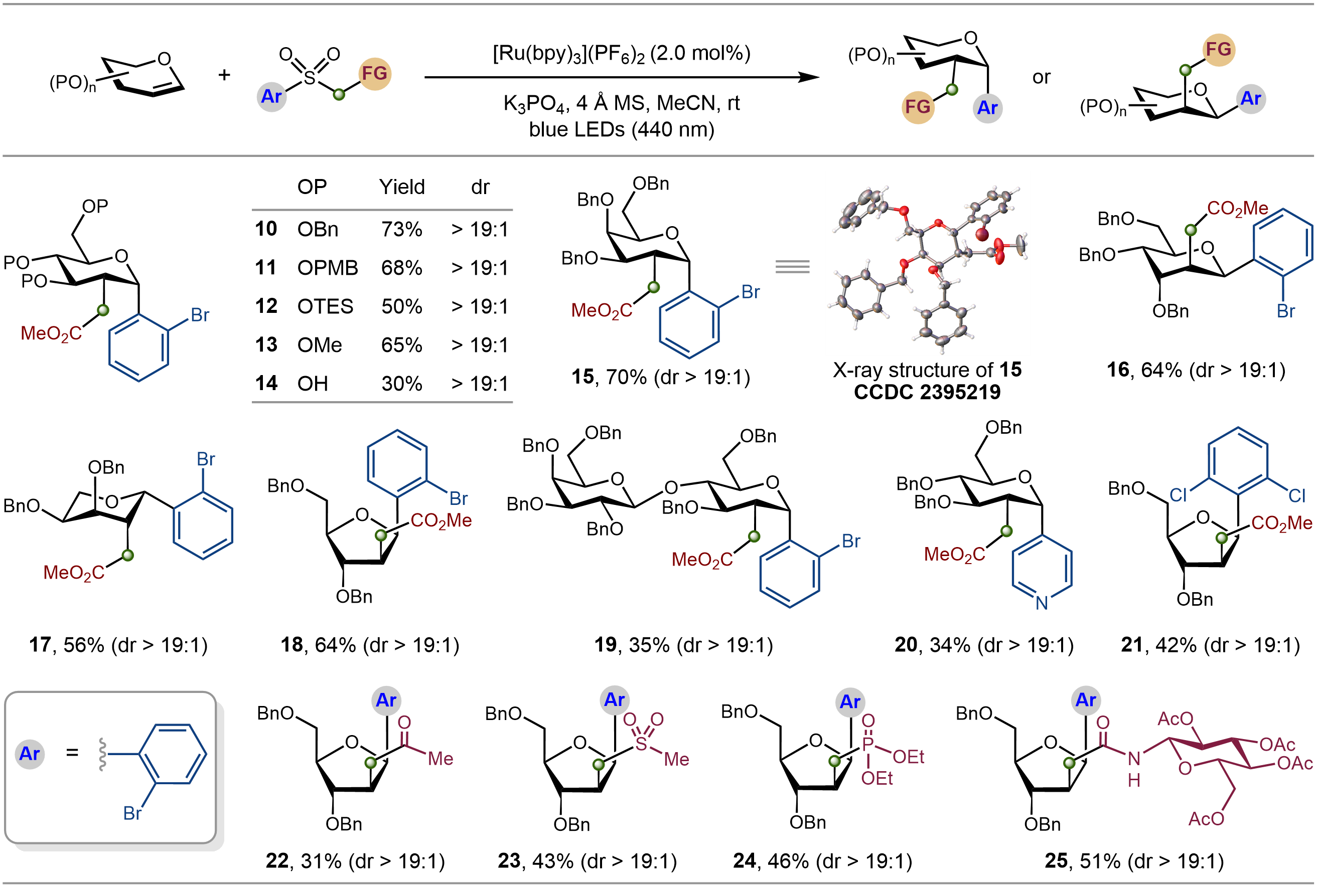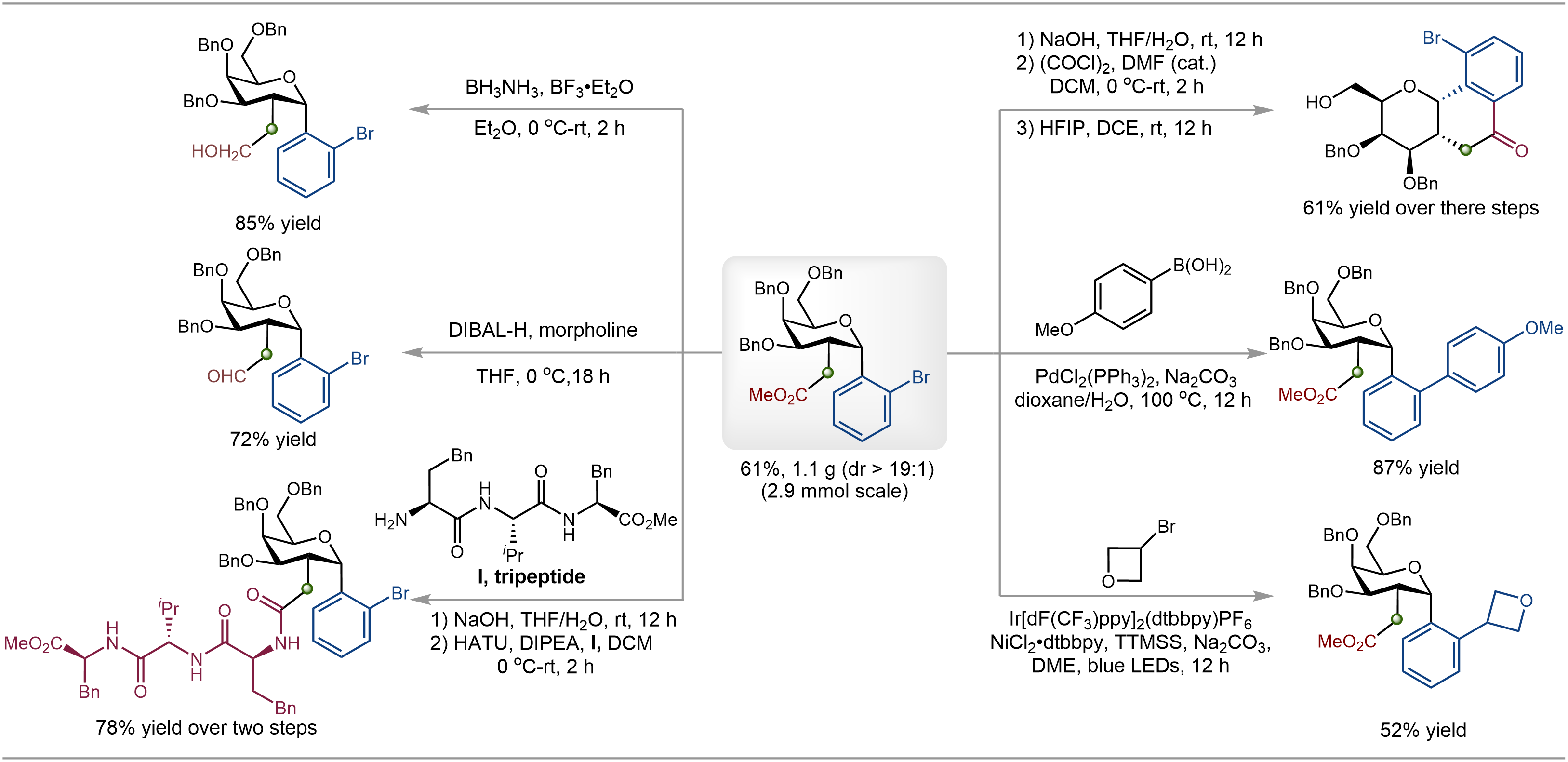 图1. 糖环双位点高区域与立体选择性C-烷芳基化