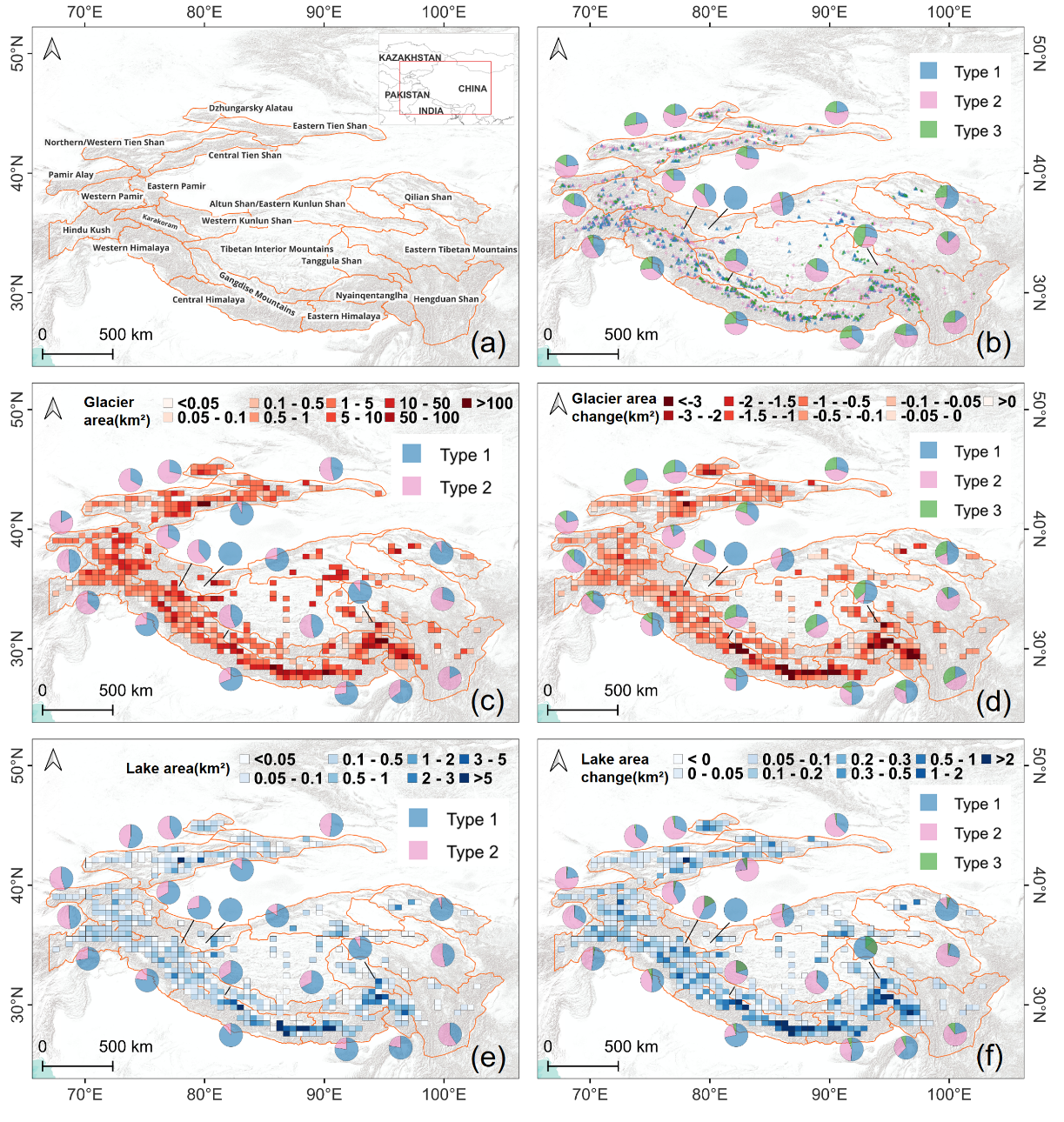 亚洲高山区入湖冰川和冰前湖面积、数量分布与变化