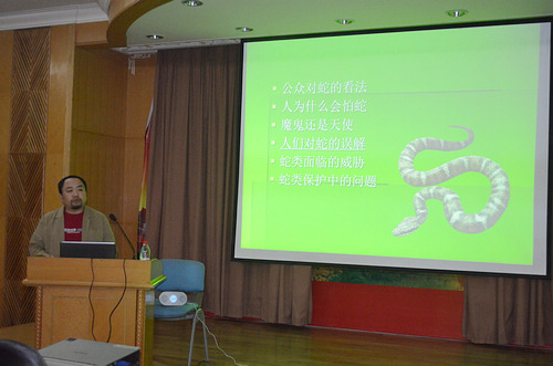 3月28日,由中科院成都生物所团委主办,两栖爬行动物研究室团支部和两栖爬行动物保护协会承办的“蛇年说蛇”科普讲座活动举行。
