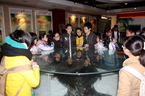 成都生物所两栖爬行科普馆里的一幅幅图片则将同学们一下带入了茂密的原始森林。在老师的讲解下,同学们仿佛身临其境,与两栖爬行动物玩起互动。