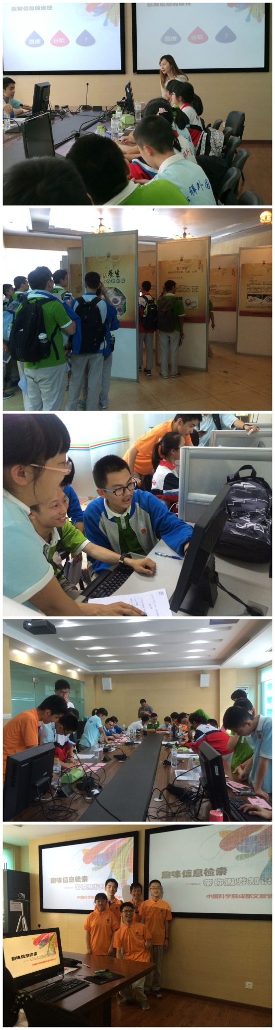 中心参与了2016年重庆市科技活动周启动仪式暨中国科学院公众科学日启动仪式,以及科学求真营活动。中心的科学传播工作负责人针对求真营学生需求,设计了趣味信息检索系列课程,包括 “信息检索探索”、“信息检索基础知识”、“网络信息检索实践”、“信息检索原理、途径及方法”、“数据库探索”等六个课程,层层推进向同学们传授了信息检索知识,并详解了数据库资源,指导学生实际操作。学生们反馈收获良多,并做了报告反馈。中心的科学传播工作负责人还参与了科学求真营学生总结汇报的点评工作,为整个公众科学日和科技活动周活动画上圆满句号。