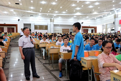 7月3日,中国科学院院士沈保根为绵阳中学1000多名准高中生作题为“我们生活在磁的空间里”科普讲座。
