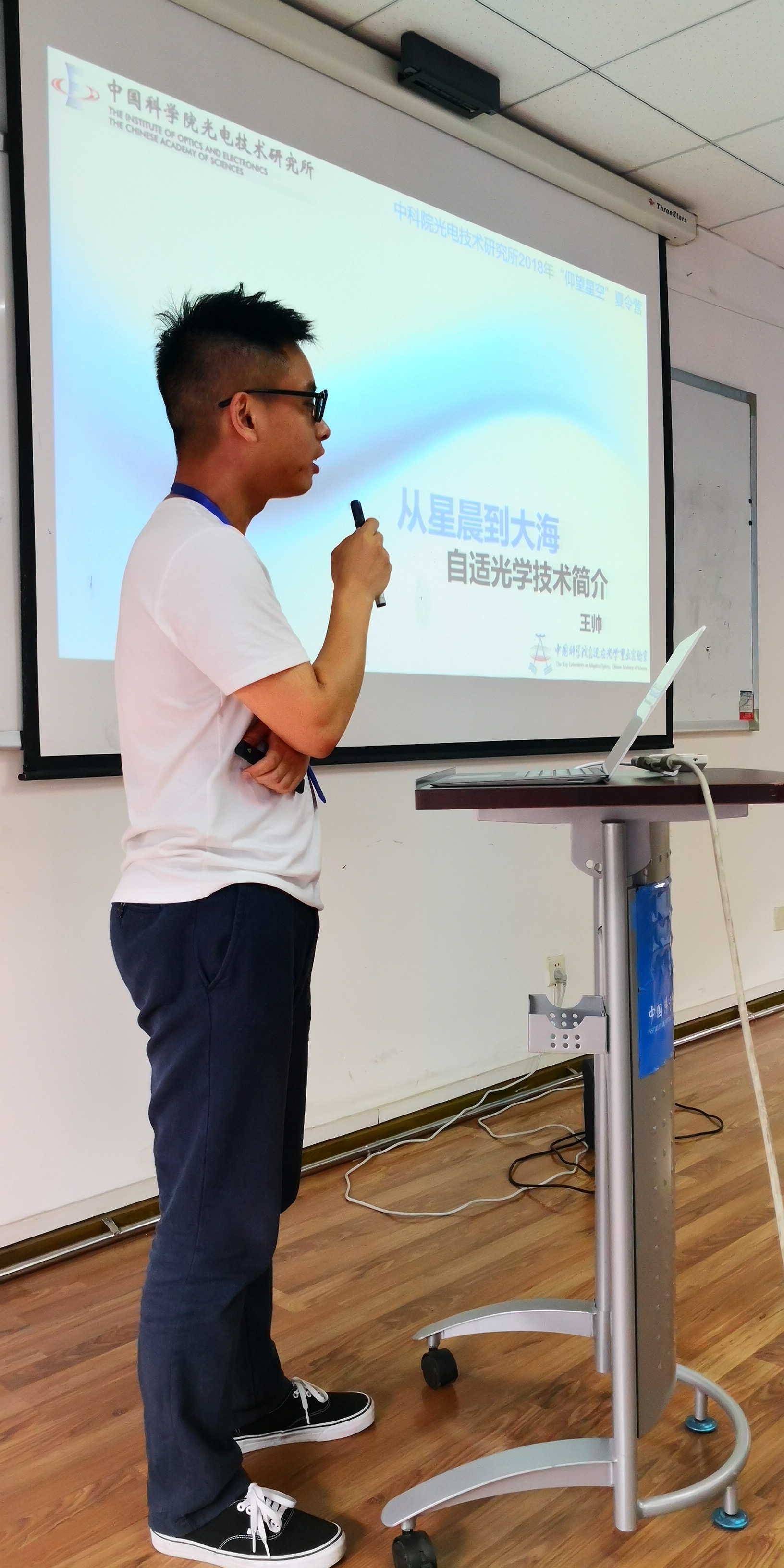 随后,饶长辉副所长在致辞中,对参加夏令营的全体营员表示热烈欢迎,鼓励营员充分利用一周的时间,了解光电所的科研环境、研究动态、研究生培养,有所感悟,有所收获,为今后求学、择业做好准备。紧接着,他作了题为《大口径光学望远镜发展》的专题报告,介绍了国内外大型光学望远镜的发展历程以及我所在此领域的发展状况。报告紧贴夏令营“仰望星空”的寓意。
