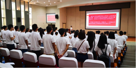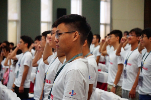 7月17日上午,夏令营开营仪式在光电所学术报告厅隆重举行,在全场观众起立及注目礼下,3名护旗手踏着整齐步伐将本次夏令营营旗护送入场。光电所副所长饶长辉研究员将营旗授予本次夏令营的营长,来自重庆邮电大学的袁良柱同学,全体营员面对营旗举起右手庄严宣誓:“仰望星空、探索真理;脚踏实地、追求极致;不忘初心、牢记使命;报效祖国、服务人民!”此刻,本次夏令营正式拉开序幕。