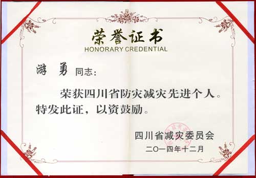 成都山地所游勇研究员获“四川省防灾减灾先进个人”表彰