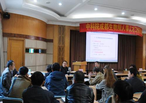 4月14日,为加强人才工作,构筑人才高地建设体系,编制好“十三五”人力资源规划,为“十三五”科技规划“一三五”任务的实现提供人才保证,经认真筹划,中国科学院成都生物研究所召开了人事人才工作研讨会。四川省人社厅专技处处长付林,四川省科技厅人事处调研员王锋,中科院成都分院分党组书记王学定、组织人事处处长陈永波,成都生物所所长赵新全、副所长刘庆、所长助理唐卓出席会议。研究所正高和副高级专业技术职务人员、青年研究员、青促会成员、西部之光执行人以及各部门负责人参加了会议。会议由赵新全主持。