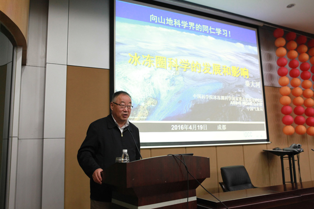 4月19日,应中国科学院山地表生过程与生态调控重点实验室王根绪主任的邀请,中国科学院秦大河院士到成都山地所作了题为《冰冻圈科学的发展和影响》的精彩学术报告。所长邓伟出席报告会,成都山地所和成都分院各单位近200名科研人员和研究生聆听了报告。报告会由副所长崔鹏院士主持。
