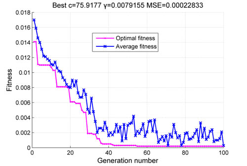 GA搜索滑坡SVM模型最佳参数的适应度曲线