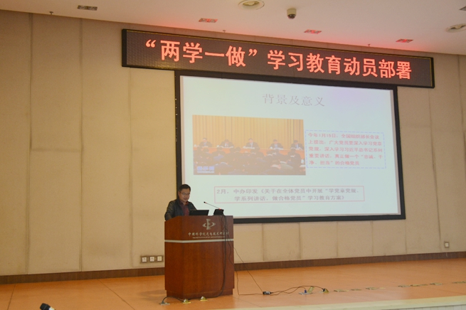 杨虎结合光电所实际情况,对光电所开展“两学一做”学习教育作了动员部署报告。报告对光电所开展“两学一做”学习教育的背景和意义进行了详细阐述,在总体要求、学习教育内容、主要措施、组织领导等方面进行了安排部署,提出了具体要求。