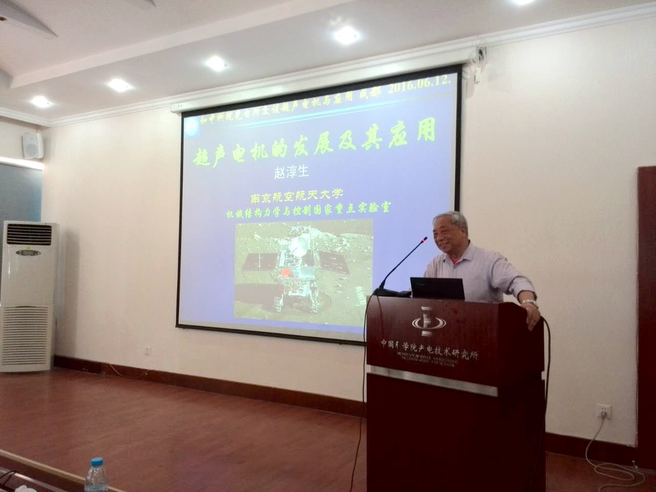 报告会上,赵淳生院士从超声电机的工作原理及其特点、超声电机相对传统电机的优势、超声电机在国内外的发展现状和应用前景等几个方面进行了详细分析与介绍,分享了自己多年在超声电机产品开发方面取得的成果。赵院士结合自己的人生阅历和科研工作体会,鼓励科研人员要树立自信,并指出科研工作贵在坚持。他强调,科研院所在科技创新强国的道路上要占有一席之地,更需要坚定创新自信的信念,科研工作者要通过自己的努力,争取为服务社会发展和广大人民群众作出更大贡献。