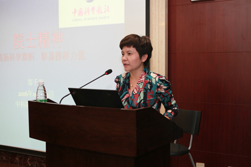 郑千里从中国院士制度追根溯源、科学精神的实质和院士精神的生动体现等方面给大家普及了我国的院士制度及其发展历史,并且结合自己的采访经历,重点介绍了老一辈院士邓稼先、王大珩、刘东生、彭恒武、邹承鲁、李政道以及潘建伟、崔鹏等新一代院士的先进事迹,以此展示我国科学家锲而不舍、百折不挠的科研精神和兢兢业业、一丝不苟、精益求精的科学态度。