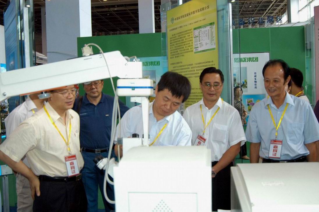 开幕式后,李家洋副院长一行在成都分院院长彭宇行、副院长关晓岗陪同下视察了中科院成都分院展位,受到了全体参展人员的热烈欢迎。中科院光电技术研究所研制的 ASOM手术显微镜吸引了李家洋副院长的目光,他在仔细听取了科技人员对该显微镜的清晰度、深景度等相关性能指标介绍后,还饶有兴趣的通过显微镜的主刀观察镜观看了相关样品。