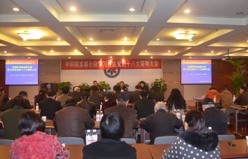 11月22日,成都分院召开学习传达党的十八大精神大会。分院党组书记、常务副院长王学定,副院长赵永涛,党组副书记、纪检组组长彭丽玲,高级业务主管杨文明、院长助理陈锋出席了会议。会议由彭丽玲主持。