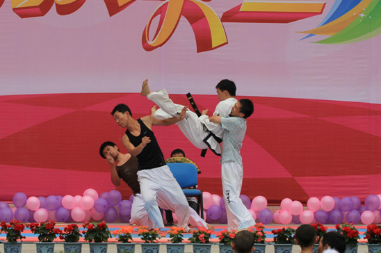 整场演出高潮迭起。小朋友们带来了精心准备的舞蹈《小板凳》、《红星闪闪》等,充满童趣的表演和活泼的笑脸给在场观众留下了深刻印象;幼教老师们的配乐诗朗诵《岁月·乐园》讲述了作为一名幼儿教师的责任与幸福;研究生给小朋友的“节日礼物”——一场幽默风趣的跆拳道表演让观众连连叫好,也引得不少小朋友纷纷在台下模仿;最后,幼教老师们一曲《光电追梦》结束了整场文艺汇演。演出吸引了双流县电视台综合频道、空港频道的全程报道。