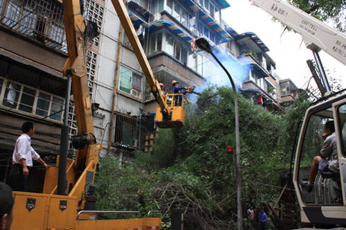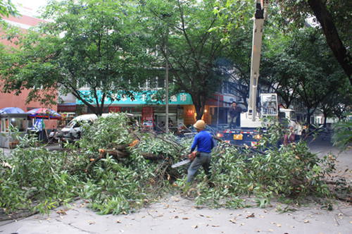 7月8至11日,成都市区连日普降大到暴雨,根据气象局统计降雨量已达800毫米以上。成都分院成科后勤公司在雨季来临前,完成了对园区排水管网清淘及危、枯树的修锯工作。
