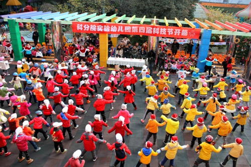 12月26日,科分院实验幼儿园第四届科技节开幕式在幼儿园大操场隆重举行。300余名2-6岁的孩子迈着整齐的步伐伴随着“探索奥秘 玩专科学”的主题口令进行了入场式表演、机器人模仿操表演和走秀表演,紧接着是领导们给孩子们的科学小制作颁奖,然后是机器人、汽车、飞机、潜艇等航模表演,最后在《爸爸 你要去哪儿》的萨克斯现场吹奏音乐声,小朋友们用纸飞机放飞自己的科技梦想。