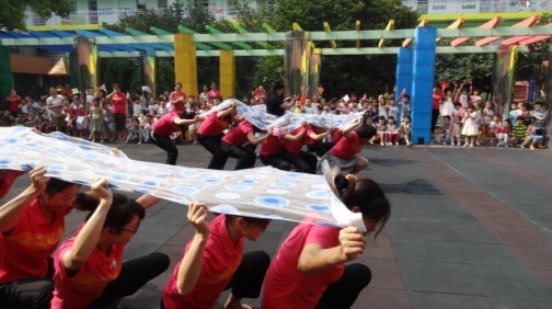 5月30日,科幼的操场上一片欢乐的海洋,大班幼儿的划龙舟比赛竞争非常激烈,大家你追我赶好不热闹;中小班的幼儿最认真,个别小朋友即使掉队了也不放弃继续完成比赛;最小的宝宝、贝贝班的小朋友在老师的护航下顺利完成了比赛。老师们的龙舟赛把本次活动推向了高潮,也为孩子们的节日增添了一份炫丽的色彩。