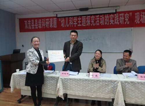 双流县研培中心理论室主任易恩主持了光电所幼儿园承担的县级课题《幼儿科学主题探究活动的实践研究》结题鉴定会。会前,课题组通过小中大三个科学主题探究活动、课题研究过程性材料、幼儿探究活动影像、课题研究展板等展示了我园课题研究的扎实过程。会上,保教主任王兵代表课题组通过讲述、微课展示、图片、数据等向与会者汇报了研究历程、研究措施及研究成果。