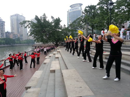 又讯:在成都市召开全球财富论坛期间,受成都市体育局邀请,成都分院老体协组队参加了全球财富论谈配偶团晨练体验活动。广大会员不顾天气炎热,克服个人及家庭困难刻苦训练。活动当天,队员们的精彩表演给外国朋友们留下了深刻印象,展示了成都人健康、积极、向上向善的精神风采。