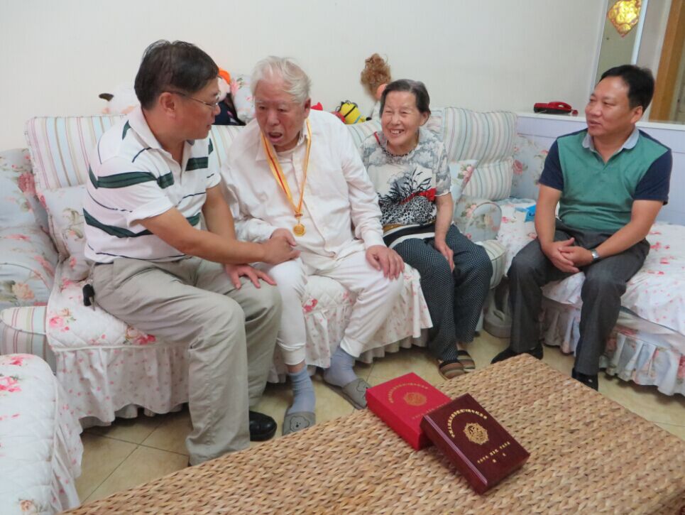 在纪念中国人民抗日战争暨世界反法西斯战争胜利70周年阅兵式后,9月6日,光电所党委副书记、副所长魏全忠在离退休办公室工作人员陪同下,到抗战时期离休干部战启先家中颁发抗战胜利70周年纪念章。为战老佩戴上纪念章后,战老激动地说:感谢当和国家的褒奖,愿我们的国家繁荣昌盛,早日实现中华民族复兴的伟大梦想。