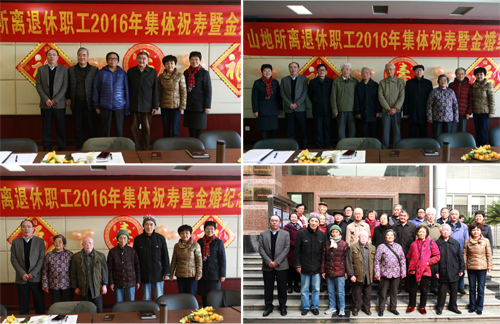 12月7日,成都山地所举行2016年度离退休集体祝寿暨金婚祝福活动,所长文安邦、党委副书记罗晓梅与年满70、80周岁的老同志及配偶、金婚夫妇等30余人参加了活动,会议由罗晓梅主持。